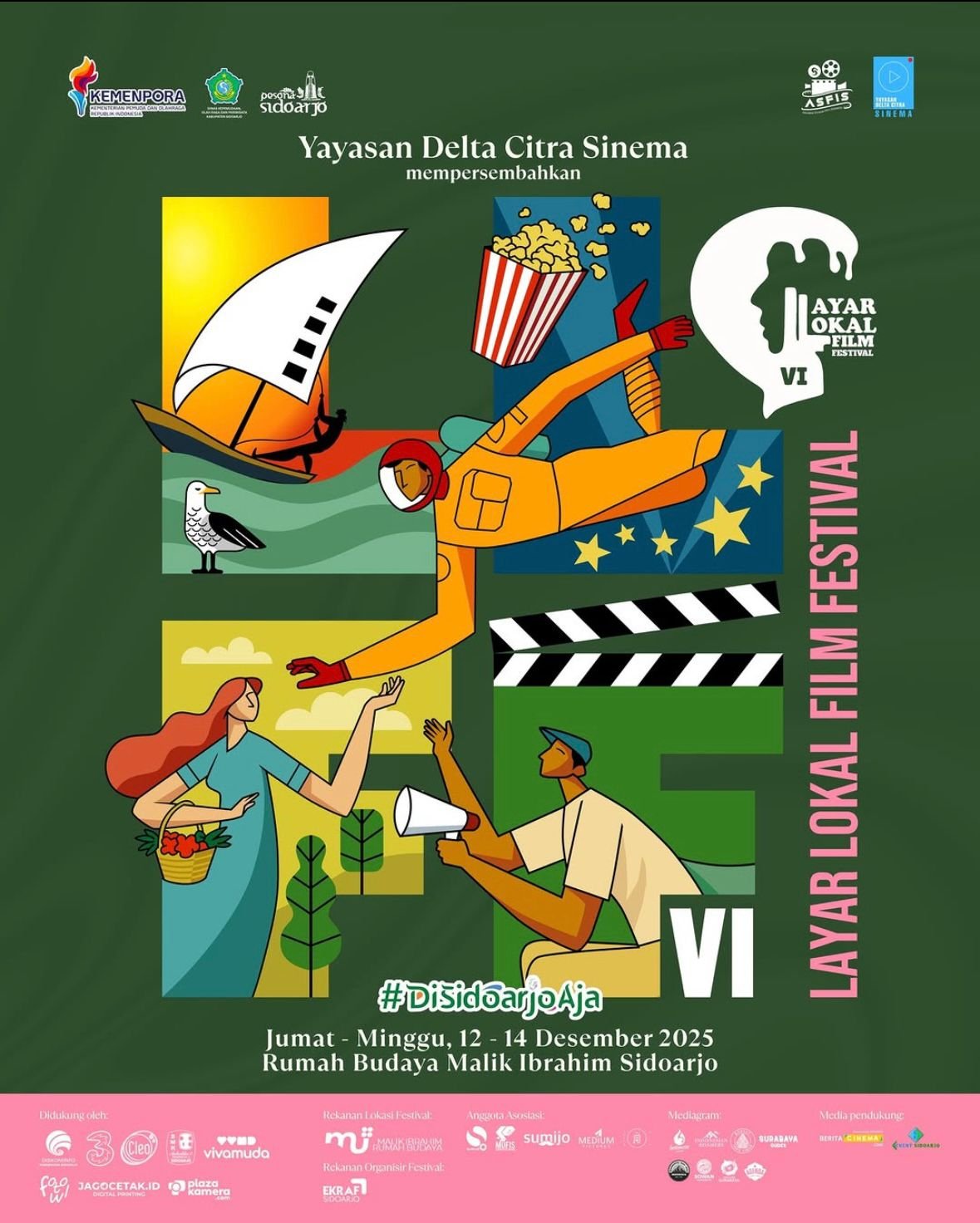 Layar Lokal Film Festival kembali hadir di tahun ke-6!Temui film-film pendek terbaik, program seru, dan perayaan karya para sineas muda dari seluruh Indonesia dan Asia. ๐Ÿ“…12-14 Desember 2025๐Ÿ“Rumah Budaya Malik Ibrahim, Sidoarjo Ayo jadi bagian dari festival film independen paling konsisten di Jawa Timur! Karena cerita selalu punya tempat untuk pulang.