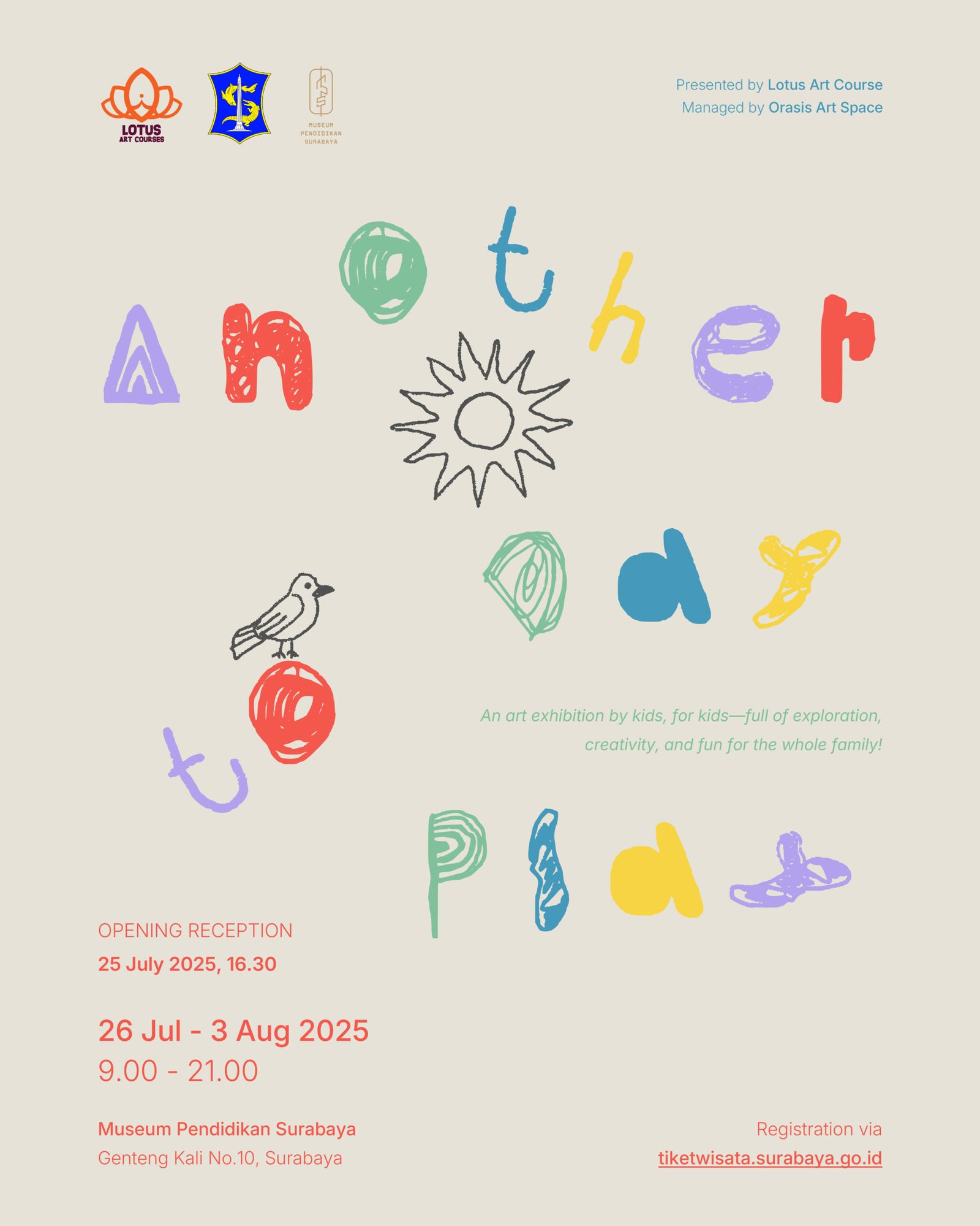 Pameran Another Day to Play mempertemukan 12 seniman muda dalam satu ruang yang menggali kembali makna bermain sebagai bagian dari tumbuh dan belajar. Berlangsung di Museum Pendidikan Surabaya, pameran ini menandai perayaan Hari Anak Nasional melalui karya yang lahir dari imajinasi, pengalaman, dan keingintahuan anak-anak. Another Day to Play 🚀 26 Juli - 3 Agustus...