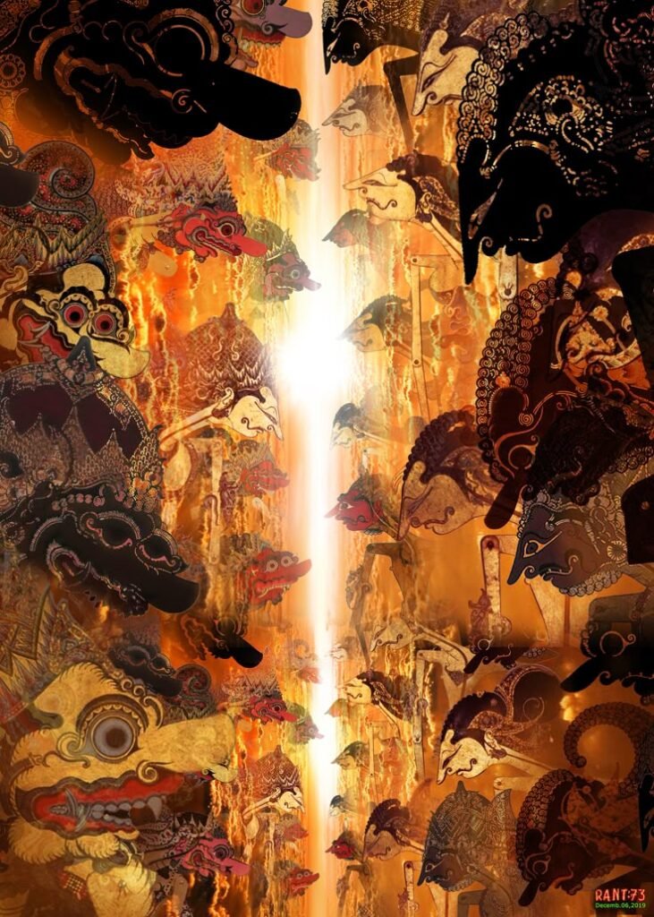 (berdiri tegak, bayangannya membesar)Tawa adalah senjata kami,karena air mata telah kering dicuri raja-raja.Wayangku adalah naskah zaman:Duryudana bisa menjelma Firaun,dan Rahwana bisa pakai jas berdasi.