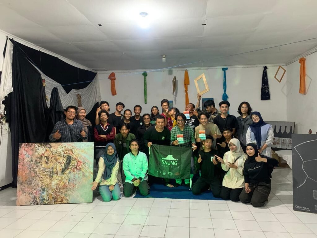 Selain sesi diskusi, acara juga diramaikan dengan pembacaan puisi dan penampilan dialog singkat dari anggota komunitas. Suasana yang terbangun terasa serius, namun tetap hangat dan penuh tawa.